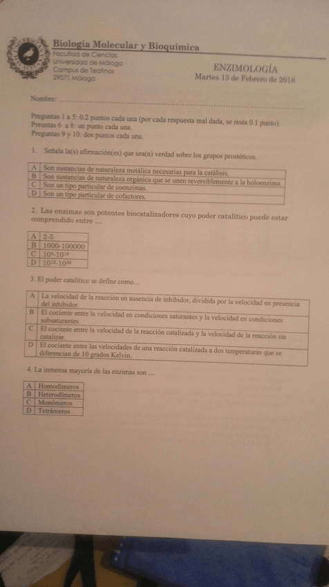 He publicado nuevos apuntes de 2º enzimología y Sus Aplicaciones: Examen Junio 2018