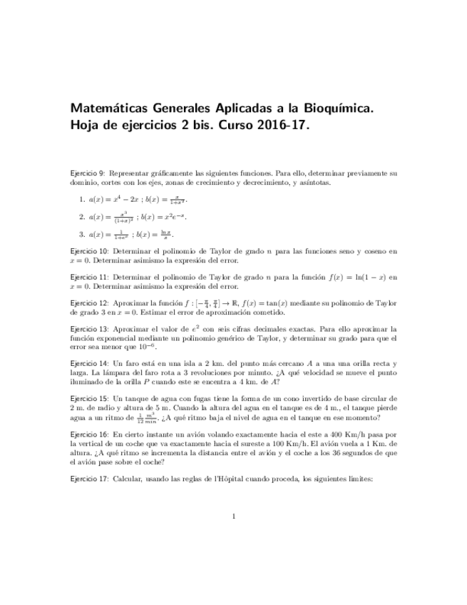 He publicado nuevos ejercicios de 1º Matemáticas Generales Aplicadas a la Bioquímica: Ejercicios 2016-17