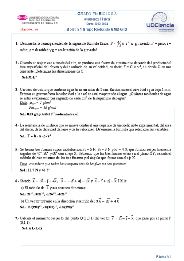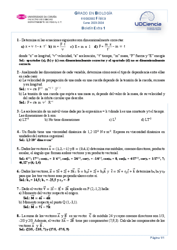 He publicado nuevos apuntes de 1º Física: Boletines generales parte 1