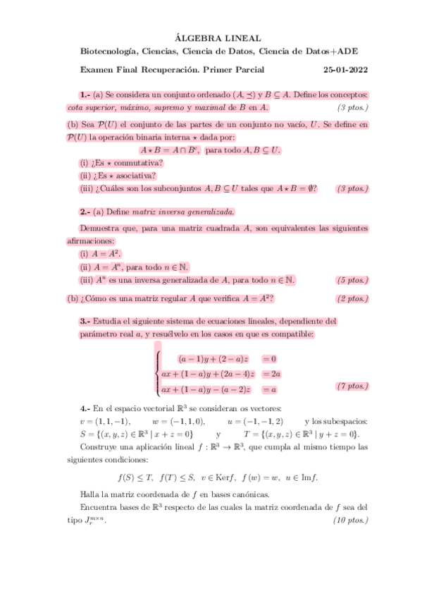 Exámenes Álgebra Primer Parcial