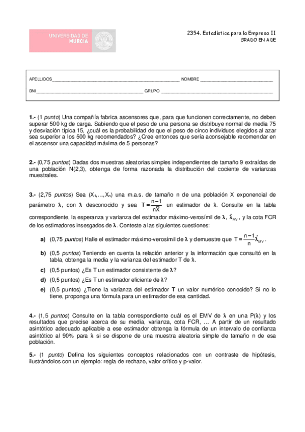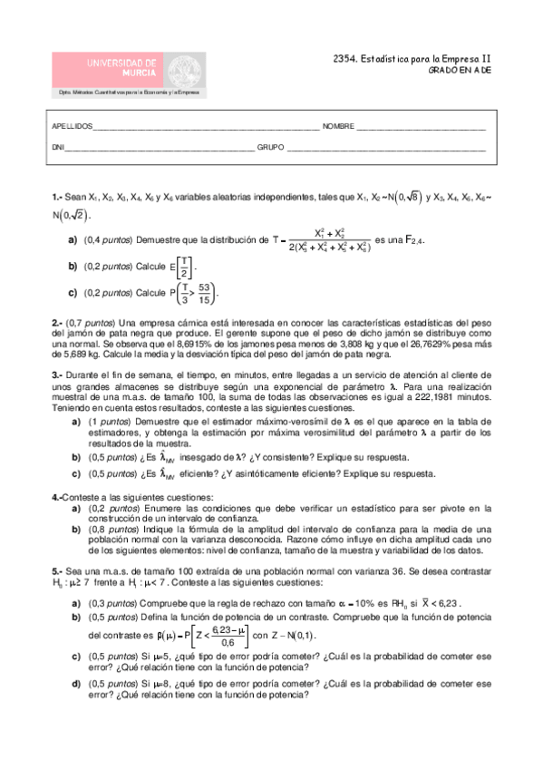 He publicado nuevos examenes de 2º Estadística Para la Empresa Ii: examenes finales con solución