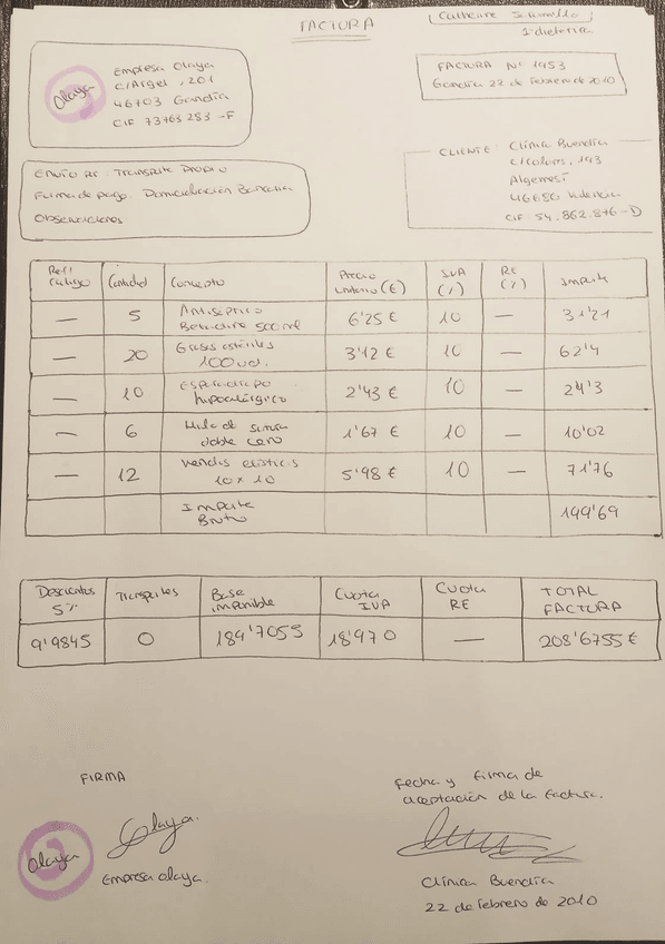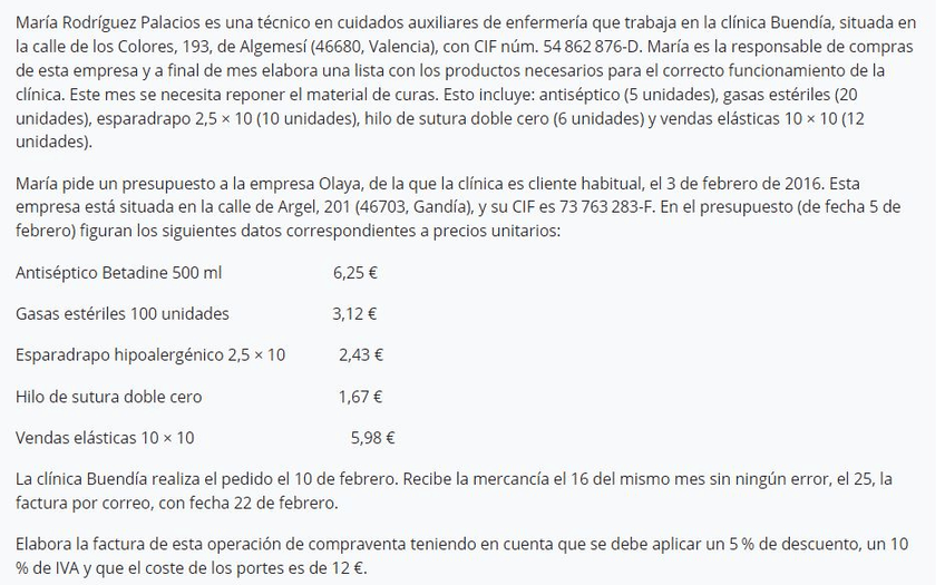 He publicado nuevos apuntes de Organización y gestión del área de trabajo asignada en la unidad/gabinete de dietética: EJERCICIO FACTURA