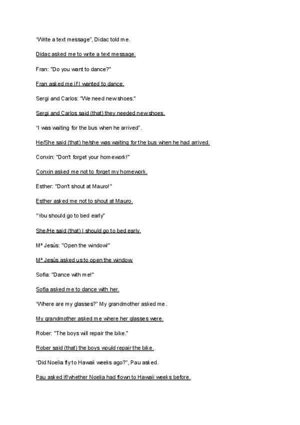 4º ESO Ingles Reported Speech