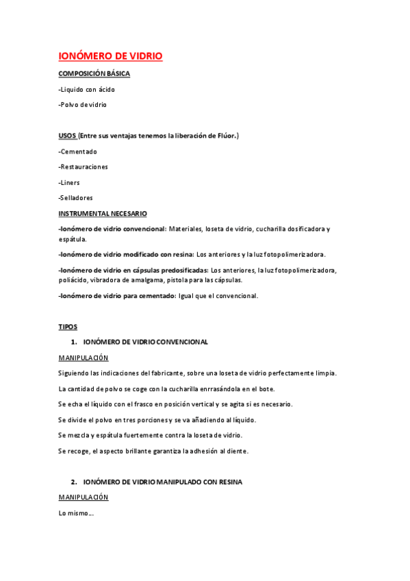He publicado nuevos apuntes de 2º Materiales Odontológicos: IONOMERO-DE-VIDRIO-1.pdf
