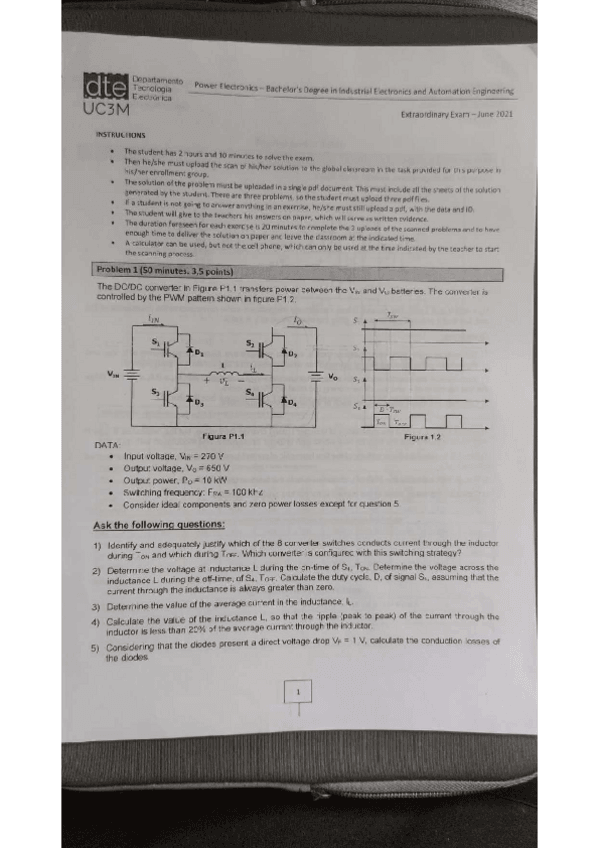 He publicado nuevos examenes de 3º Electrónica de Potencia: Examen junio 2021 Enunciado y solución