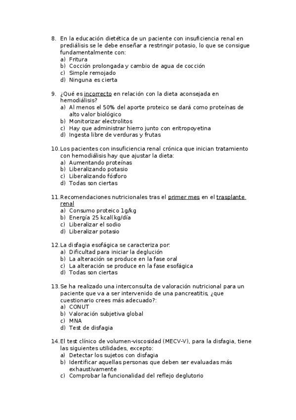 He publicado nuevos examenes de 4º Dietoterapia y Nutrición Clínica II: Examen 2.docx