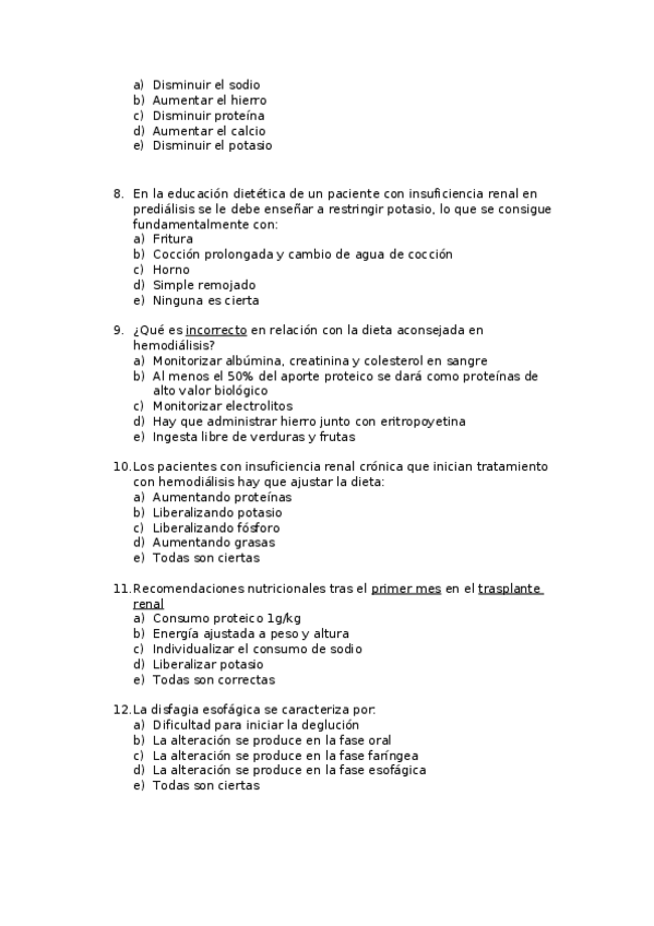 He publicado nuevos examenes de 4º Dietoterapia y Nutrición Clínica II: Examen 1.docx