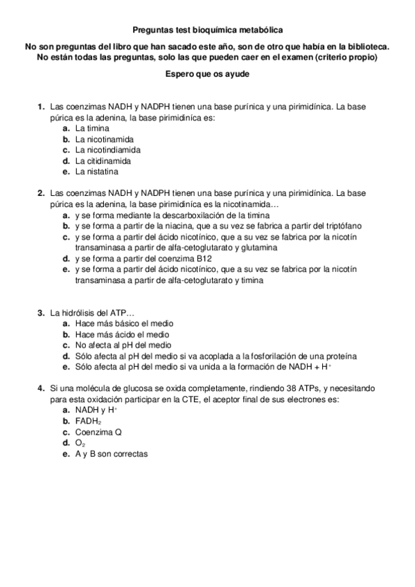He publicado nuevos test de 2º Bioquímica Metabólica: TEST DE SWAD RESUELTO