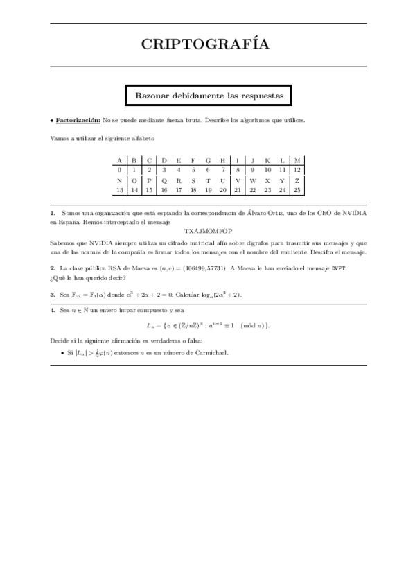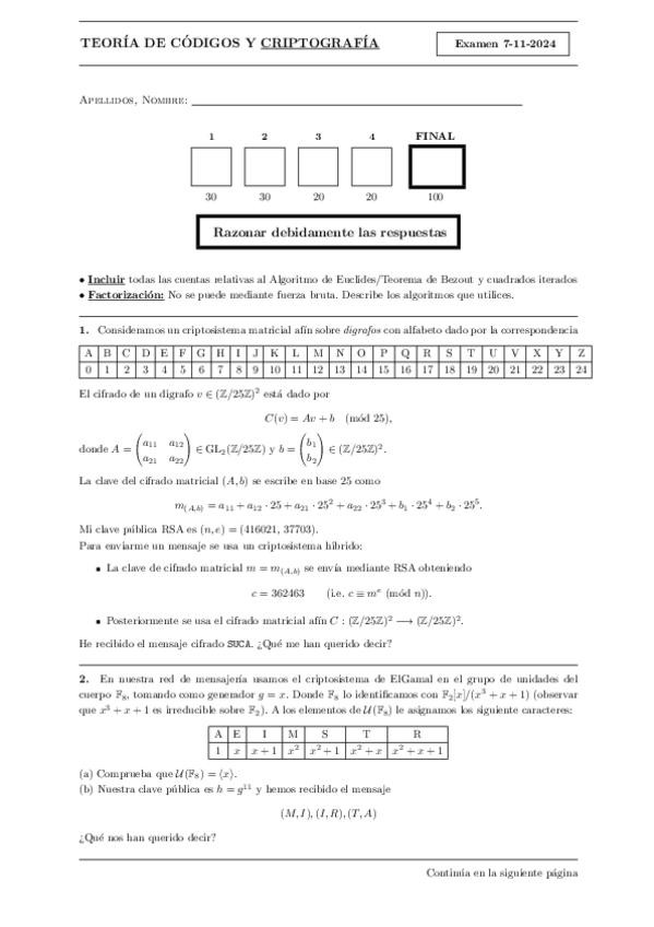 He publicado nuevos examenes de 4º Teoría de Códigos y Criptografía: Examenes 25-26