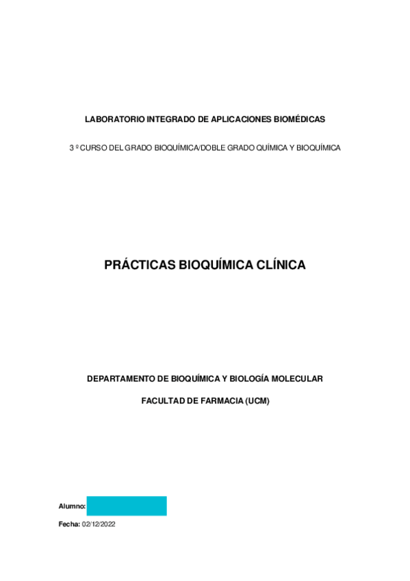 He publicado nuevos apuntes de 3º Laboratorio Integrado de Aplicaciones Médicas: Guía Bioquímica Clínica