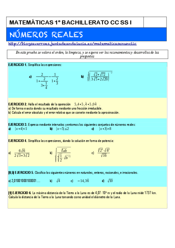 He publicado nuevos apuntes de 1º Matemáticas Aplicadas a las Ciencias Sociales I: EXAMEN-01-NUMEROS-REALES-BACHILLERATO-CC-SS-I.pdf