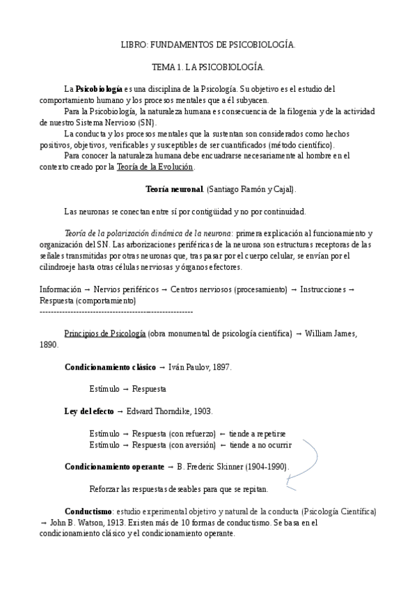 Resumen del Tema 1 de Fundamentos de Psicobiología