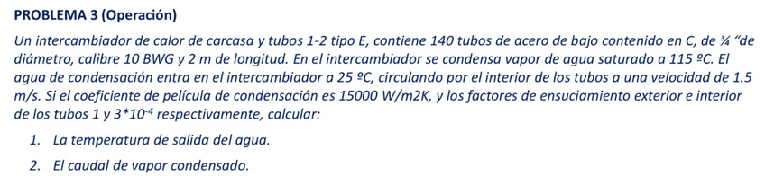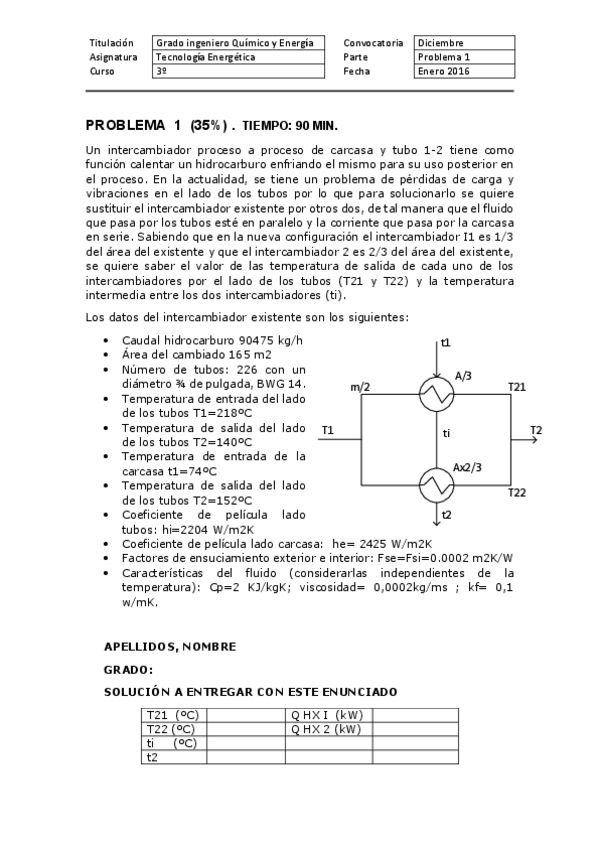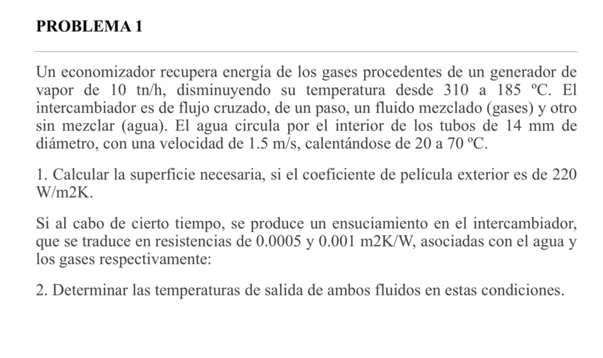Problemas examen INTERCAMBIADORES