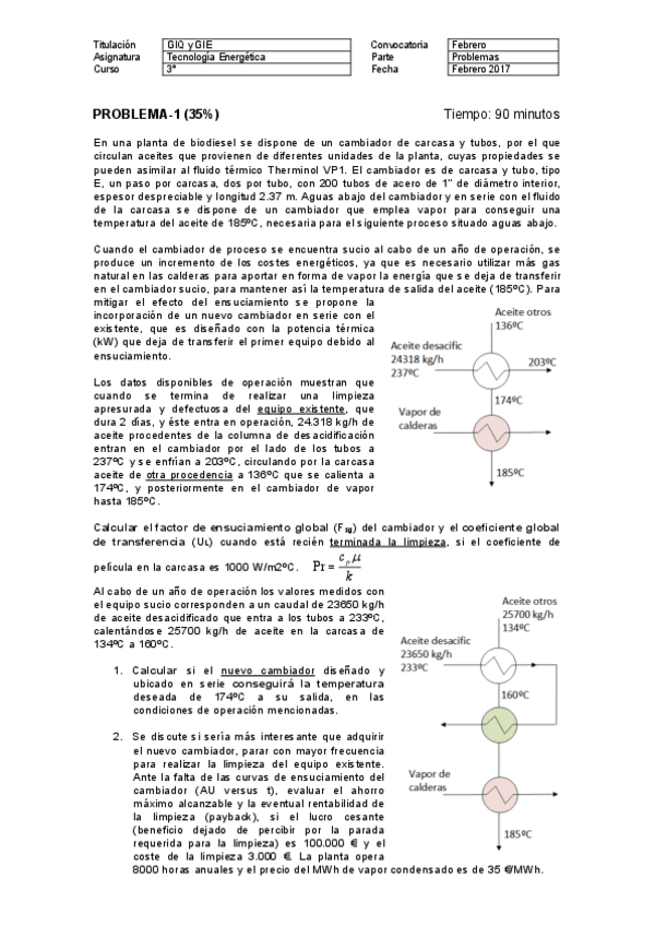 He publicado nuevos apuntes de 3º Tecnología Energética: Problemas examen INTERCAMBIADORES