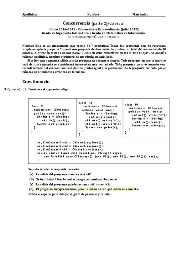 He publicado nuevos examenes de 2º Concurrencia: EXAMENES SEGUNDO PARCIAL RESUELTOS