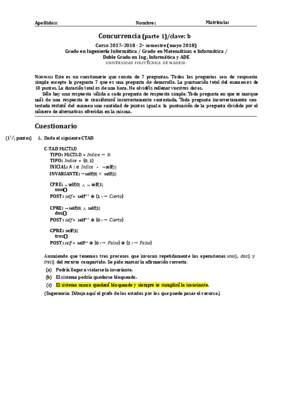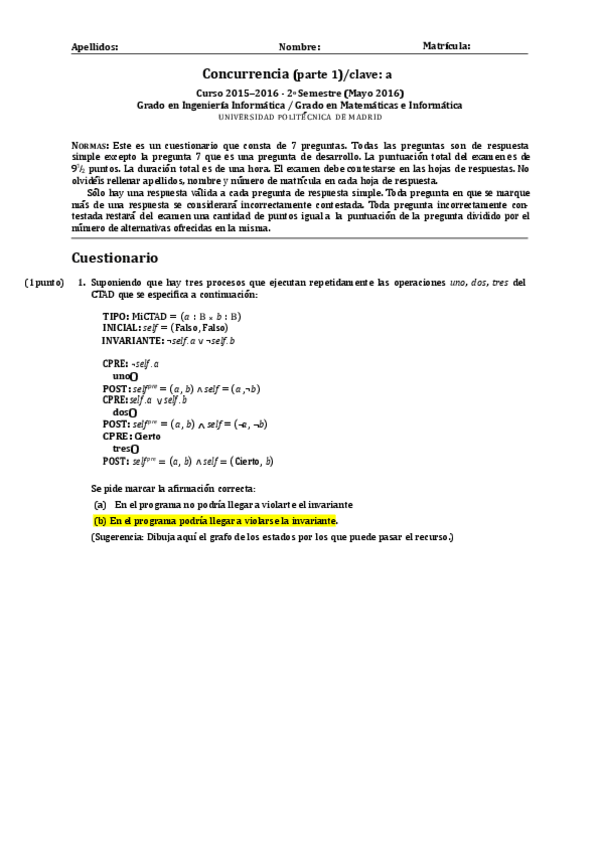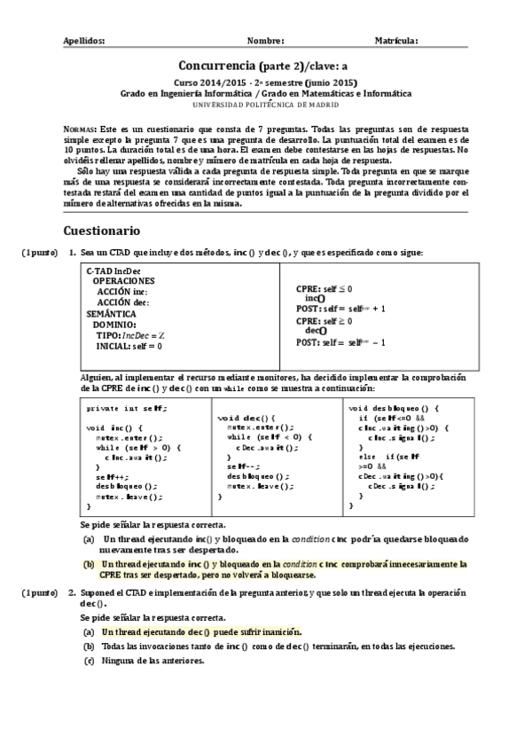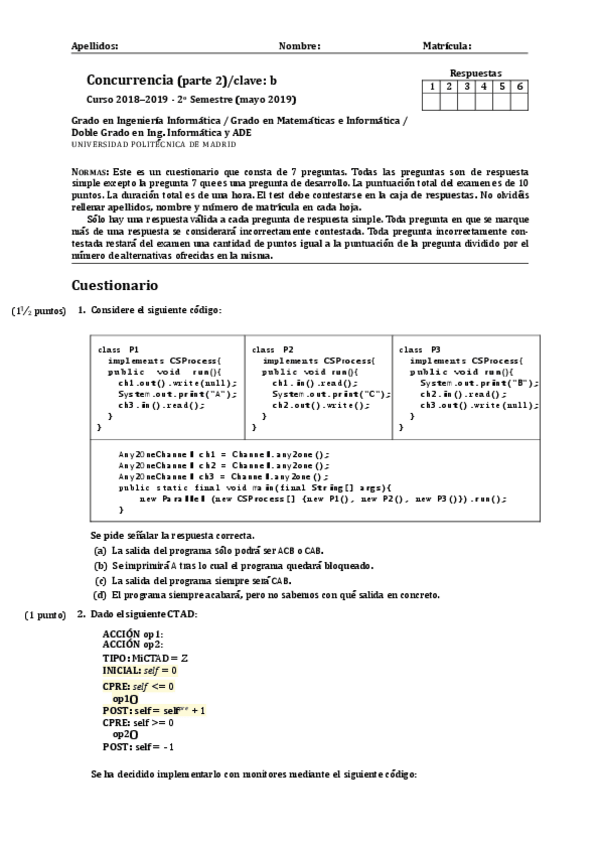 He publicado nuevos examenes de 2º Concurrencia: EXAMENES PRIMER PARCIAL RESUELTOS