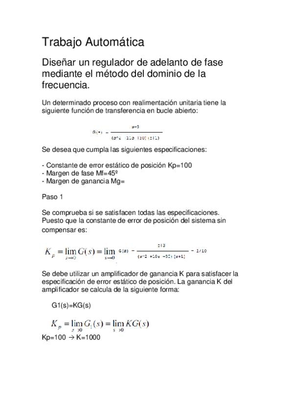 Diseñar un regulador de adelanto de fase mediante el método del dominio de la frecuencia.