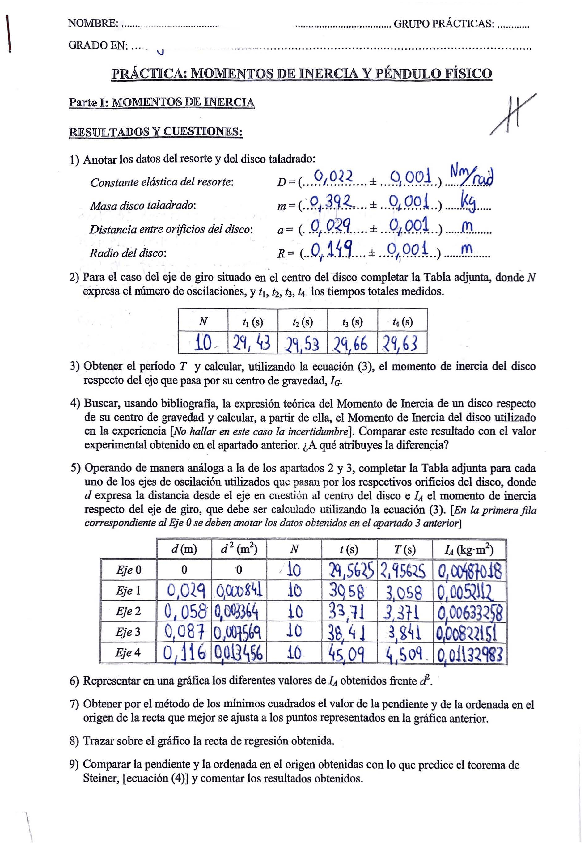 He publicado nuevos practicas de 1º Física I: Práctica 3 Disco + Péndulo - Física I