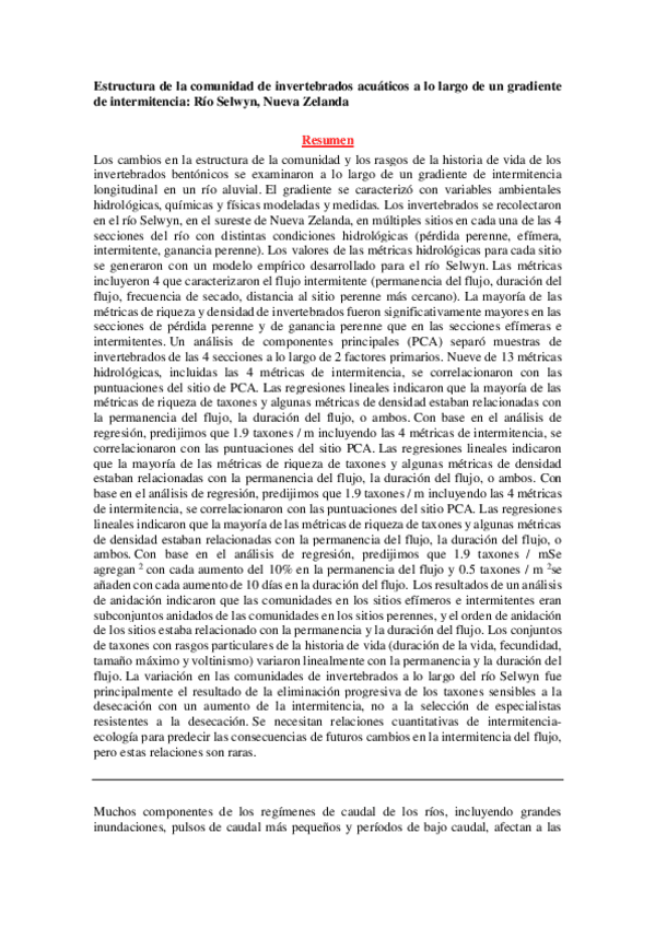 Aquatic invertebrate community structure along an intermittence gradient: Selwyn River, New Zealand.