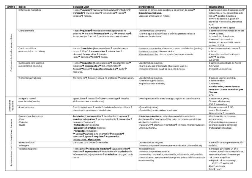He publicado nuevos apuntes de 3º Microbiología, parasitología e Inmunología Humana: Tabla-resumen-parasitos.pdf