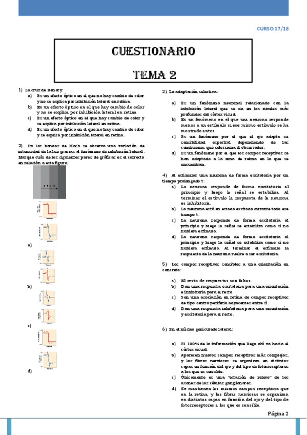 Contenido redactado de las preguntas que cayeron en el examen de Psicofísica de la visión el 17/01/2018.