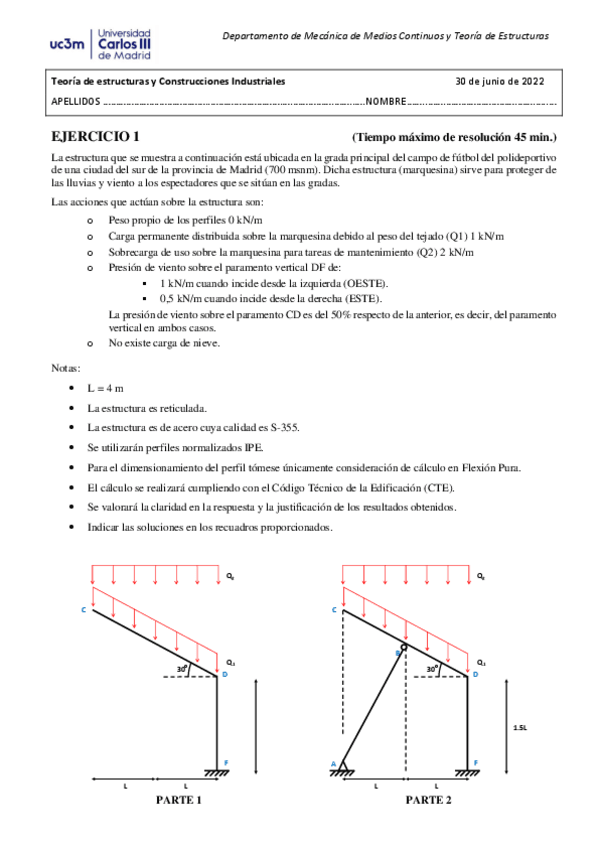 He publicado nuevos examenes de 4º Teoría de Estructuras y Construcciones Industriales: parcial1grupo11.pdf