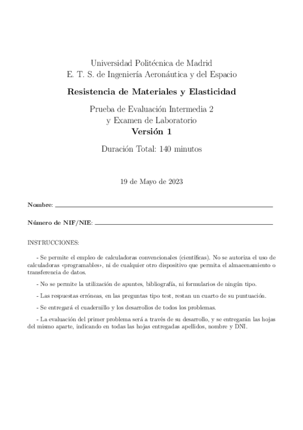 He publicado nuevos examenes de 2º Resistencia de Materiales y Elasticidad: PEI2 22/23 Resuelto.pdf