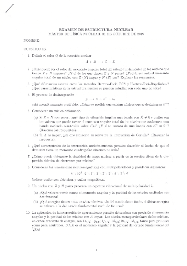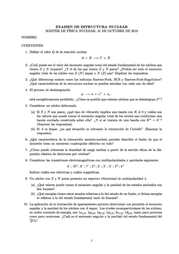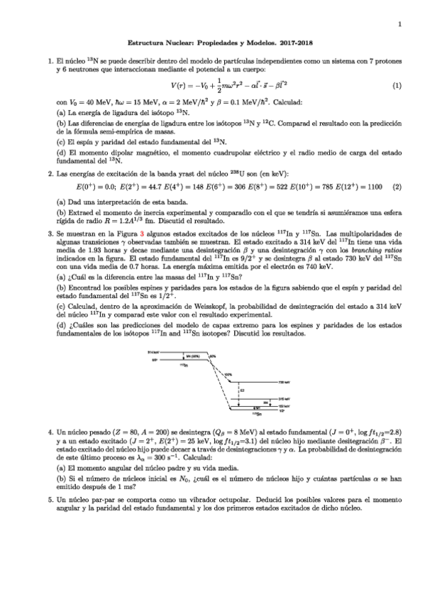He publicado nuevos ejercicios de 1º Estructura Nuclear: Propiedades y Modelos: Ejercicios entregables