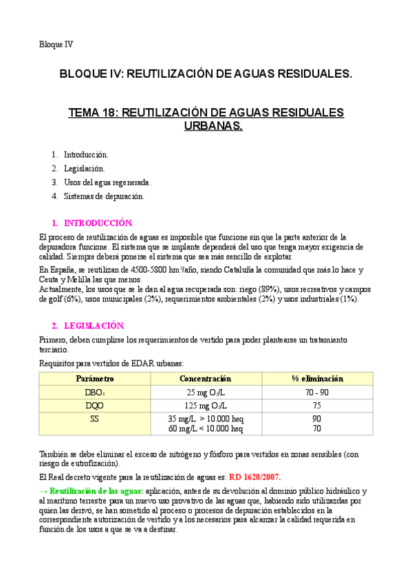 He publicado nuevos apuntes de 3º Tratamiento y Tecnología de Aguas: BLOQUE-IV-REUTILIZACION.pdf