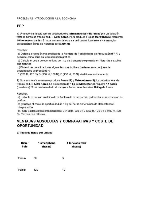PROBLEMAS Y SOLUCIONES DE ECONOMIA: FPP, COSTE DE OPORTUNIDAD Y VENTAJAS ABSOLUTAS Y COMPARATIVAS, CURVA DE LA OFERTA Y DEMANDA Y ELASTICIDAD DE LA OFERTA Y DEMANDA. SON EJERCICIOS CAMBIANDO LOS DATOS DE LOS PROPORCIONADOS POR EL PROFESORADO