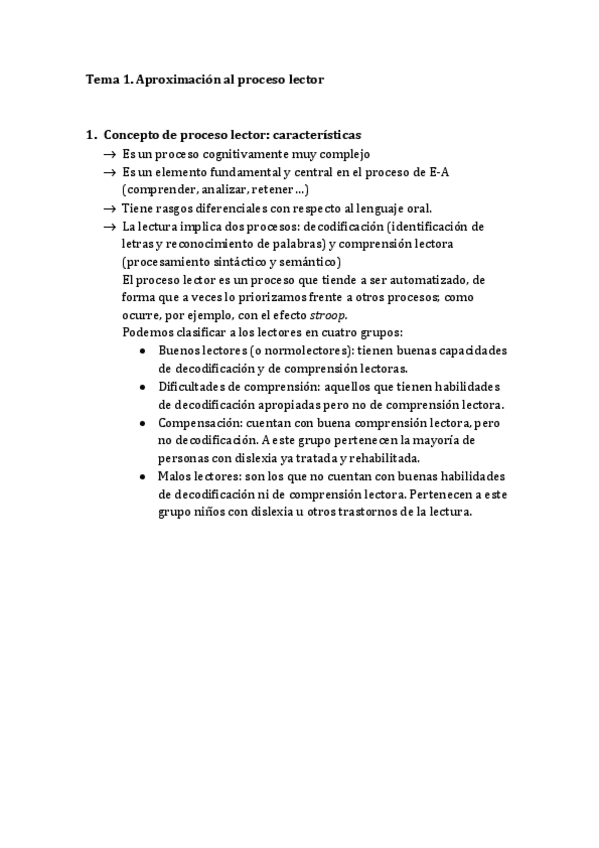 He publicado nuevos apuntes de 4º Tratamientos Psicoeducativos de Los Trastornos de la Lengua Escrita y El Cálculo: Resumen Bloque 1. Lectura.pdf