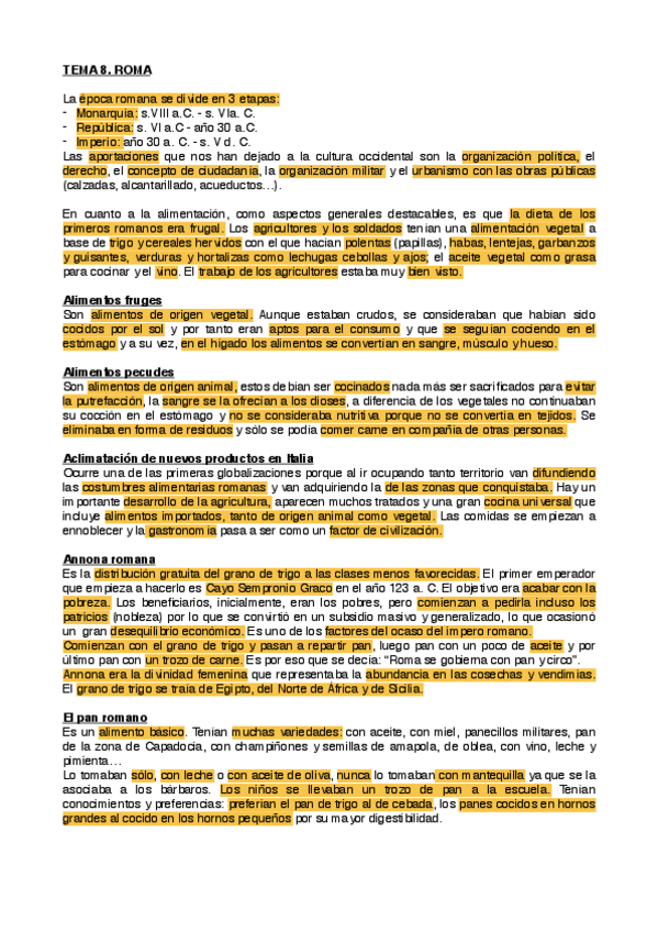 He publicado nuevos apuntes de 1º Alimentación y Cultura: Tema 8. Roma .pdf
