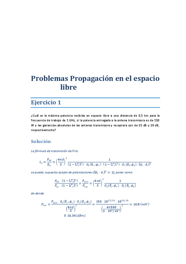 Soluciones ejercicios Propagación de Ondas