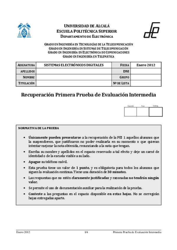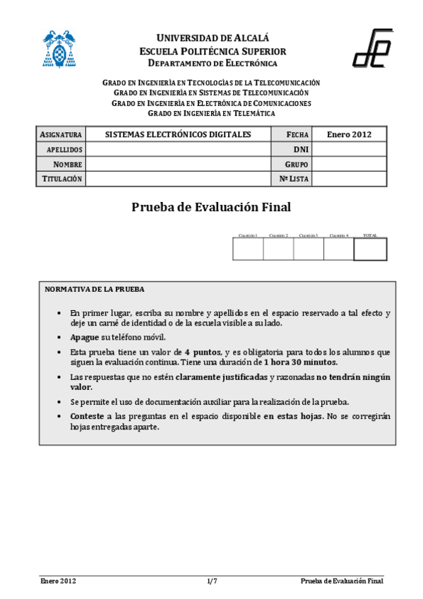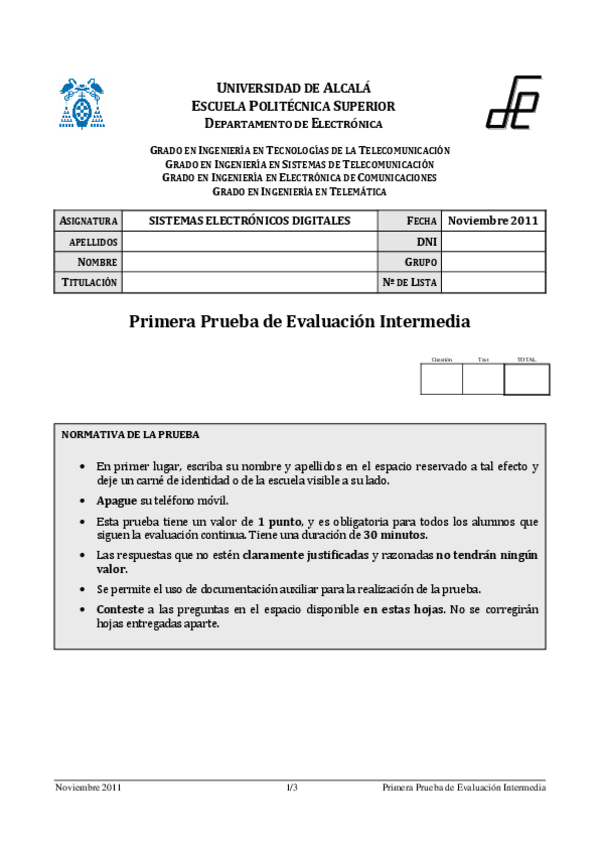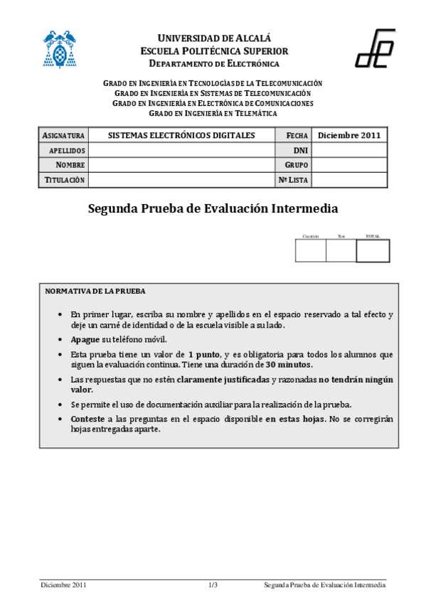 He publicado nuevos examenes de 3º Sistemas Electrónicos Digitales: Examenes 2011-2012