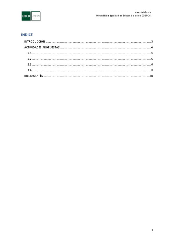 PEC asignatura Uned "Diversidad e igualdad en educación" curso 2023/24