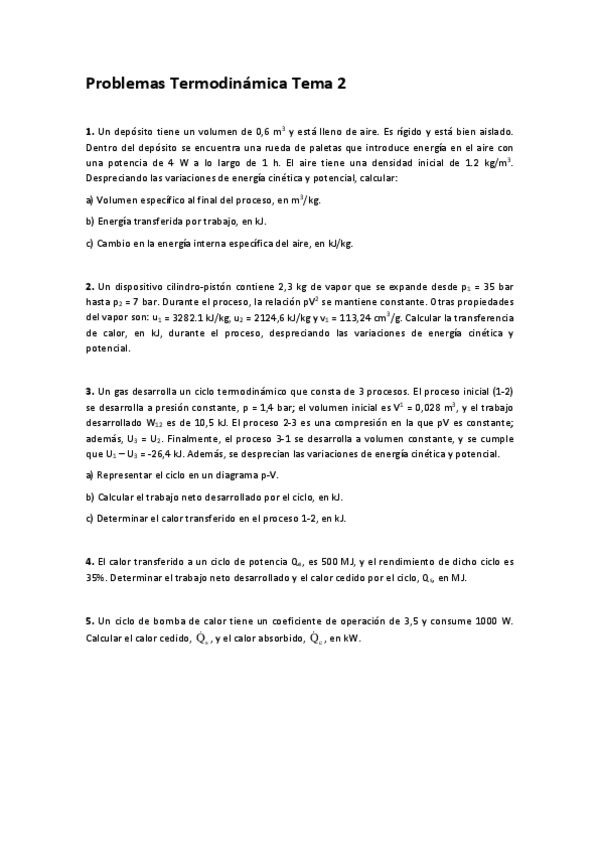 He publicado nuevos ejercicios de 2º Termodinámica Técnica y Fundamentos de Transmisión de Calor: Problemas de clase TEMA 2-9