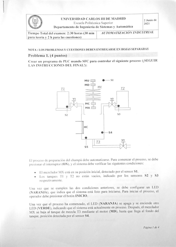 He publicado nuevos examenes de 2º Automatización Industrial: ExamenAutomatizacionJunio2021.pdf