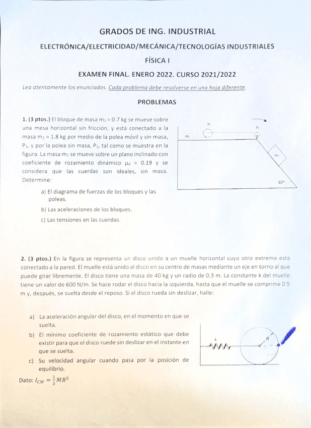 He publicado nuevos examenes de 1º Física I: EXAMEN ORDINARIO ENERO 2022 y SOLUCION