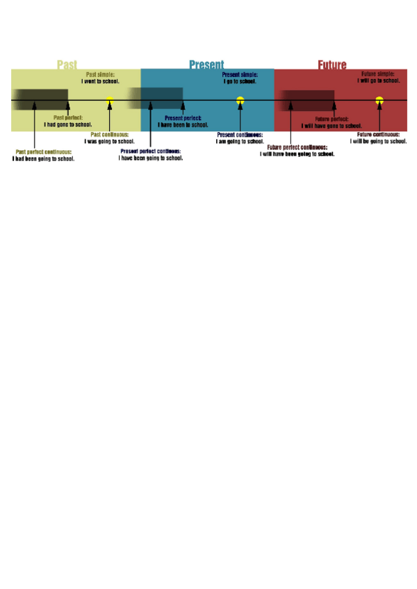 Todos los English Tenses ordenados según su uso en una línea temporal + ejemplos