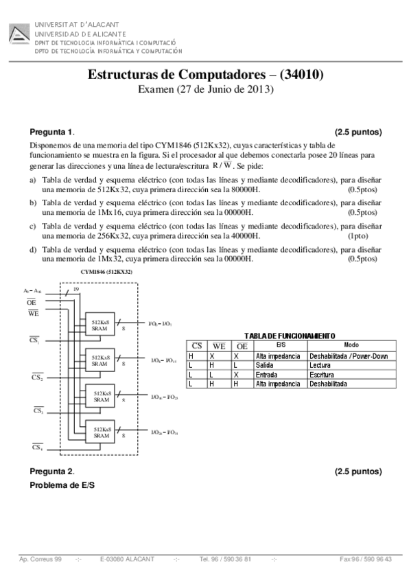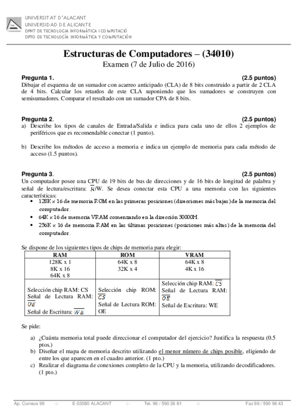 He publicado nuevos examenes de 1º Estructura de los Computadores: Exámenes