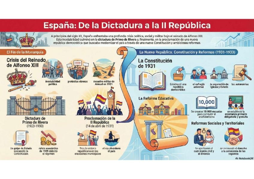 En este documento se encuentra una infografia sobre como se paso de dictadura a la segunda republica