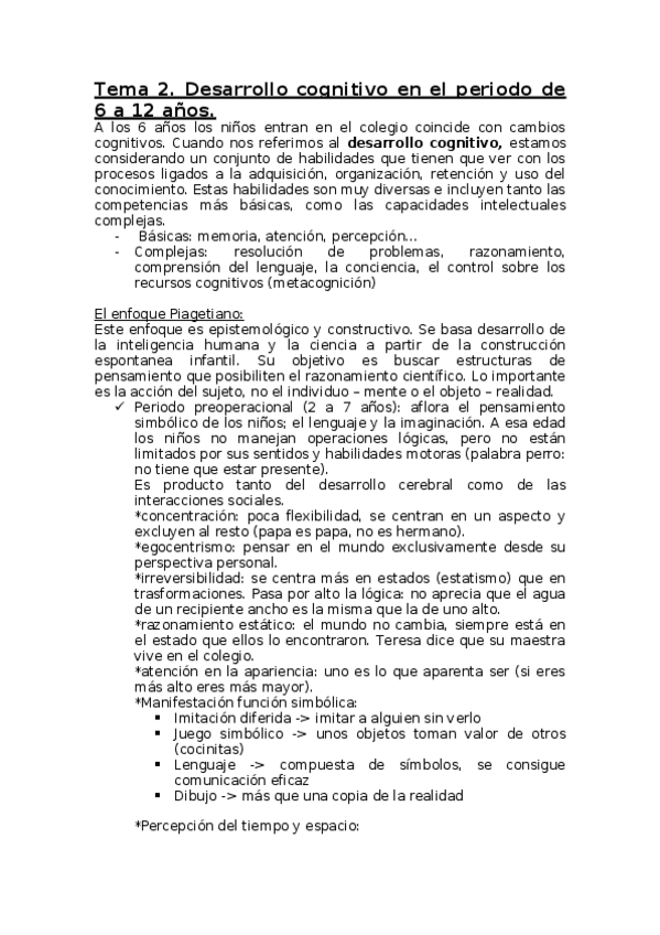 He publicado nuevos apuntes de 1º Psicología del Desarrollo: tema 2. desarrollo coginitivo en el periodo de 6 - 12 años.docx