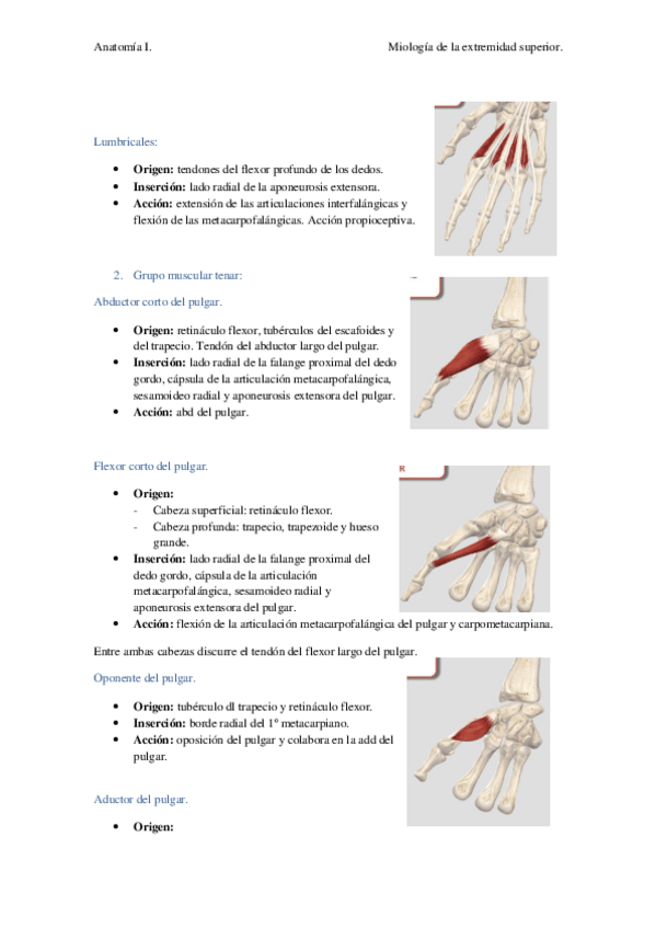 He publicado nuevos apuntes de 1º Anatomía del Aparato Locomotor: Musculatura intrínseca de la mano.pdf