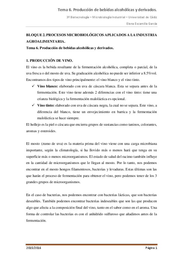 Resumen Tema 10 - Producción de Bioetanol