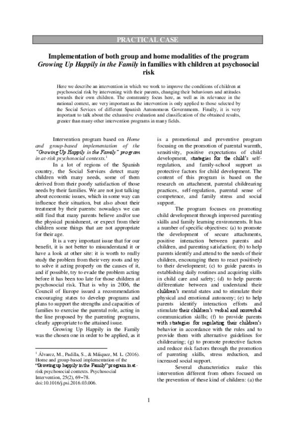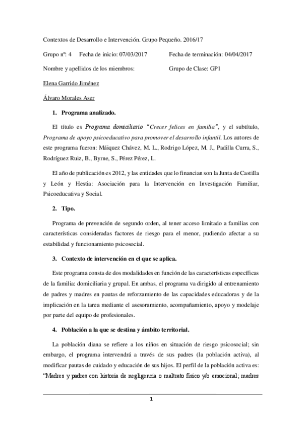 Estudio de los programas Crecer Felices en Familia y Yo cuento, tú pintas, ella suma