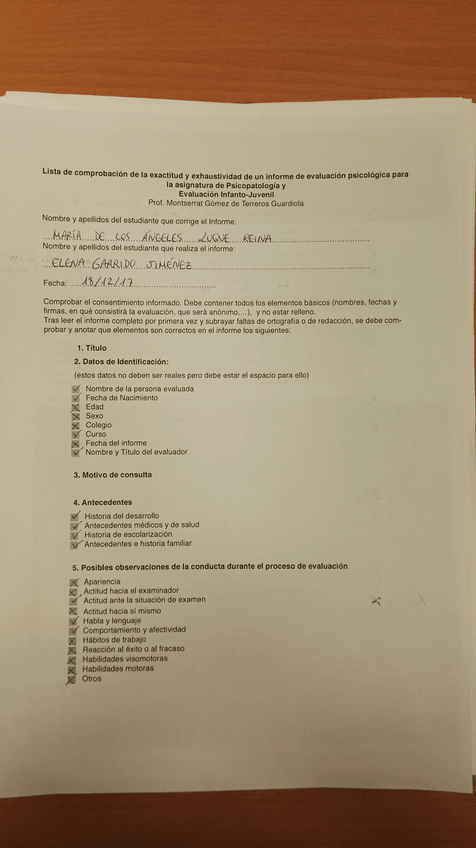 He publicado nuevos apuntes de 4º Psicopatología y Evaluación Infanto-Juvenil: Plantilla de corrección del informe de prácticas