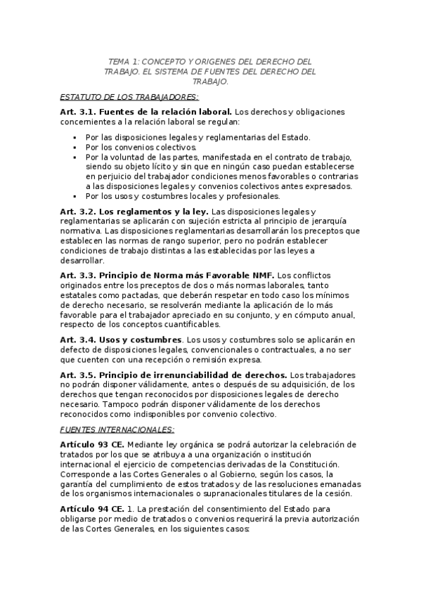 Temario Dcho. del Trabajo. Curso 18/19.