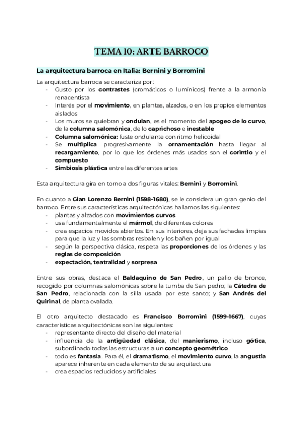 Arte barroco enfocado a las preguntas posibles de desarrollo de selectividad.