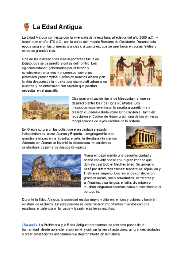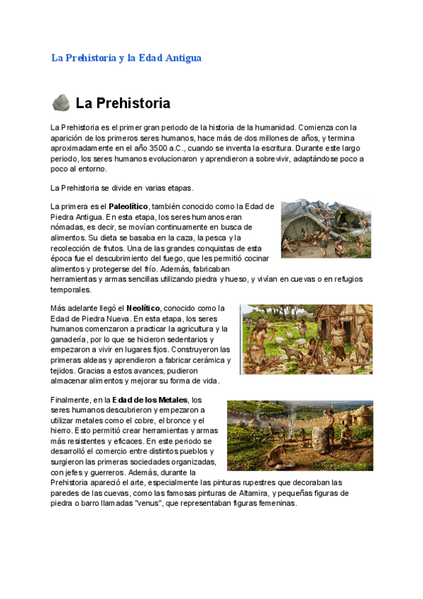 Apuntes sencillos y claros sobre la Prehistoria y la Edad Antigua