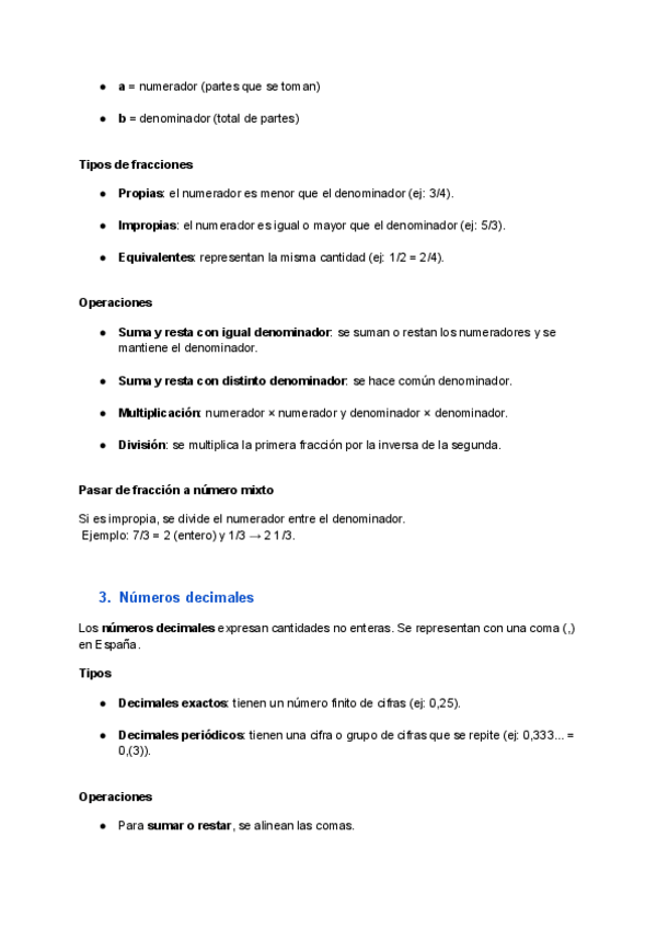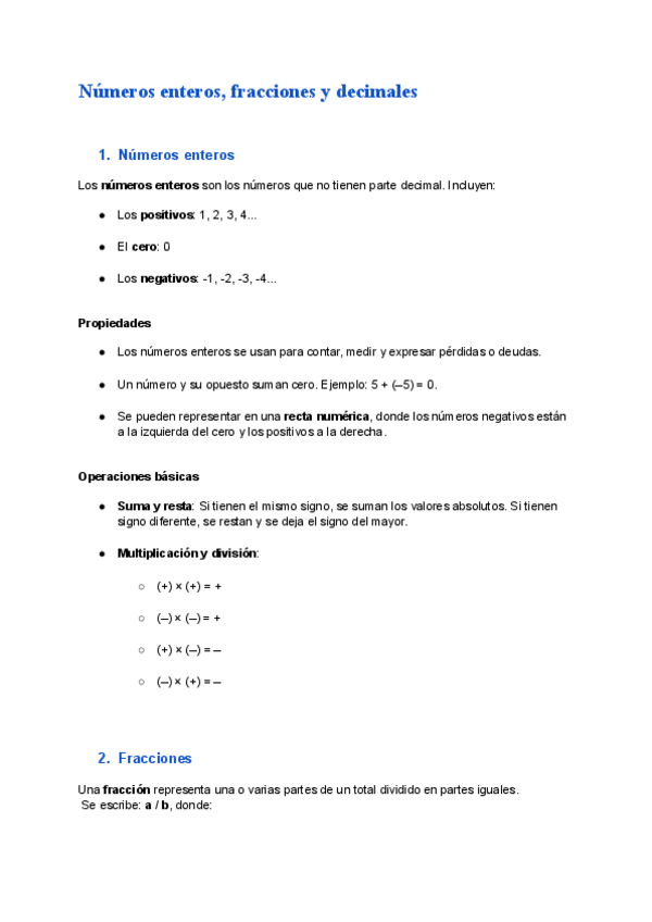 Apuntes completos y actualizados sobre los números enteros, las fracciones y los decimales.